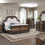 Step into a world where classic elegance meets timeless design with our exquisite bedroom collection. Designed for those who covet regal charm and functionality, this suite features rich, natural wood tones that evoke the grandeur of an aristocratic estate. Each piece boasts intricate carvings and moldings, with a stately bed that stands as the centerpiece — its tufted headboard provides a touch of luxury and comfort. The coordinating pieces, including a multi-drawer dresser, a gracefully curved mirror, and a tall chest, all offer generous storage while maintaining the sophisticated aesthetic. Marble tops and antiqued hardware add a final touch of elegance, ensuring this collection will elevate your bedroom into a luxurious retreat.