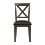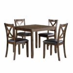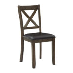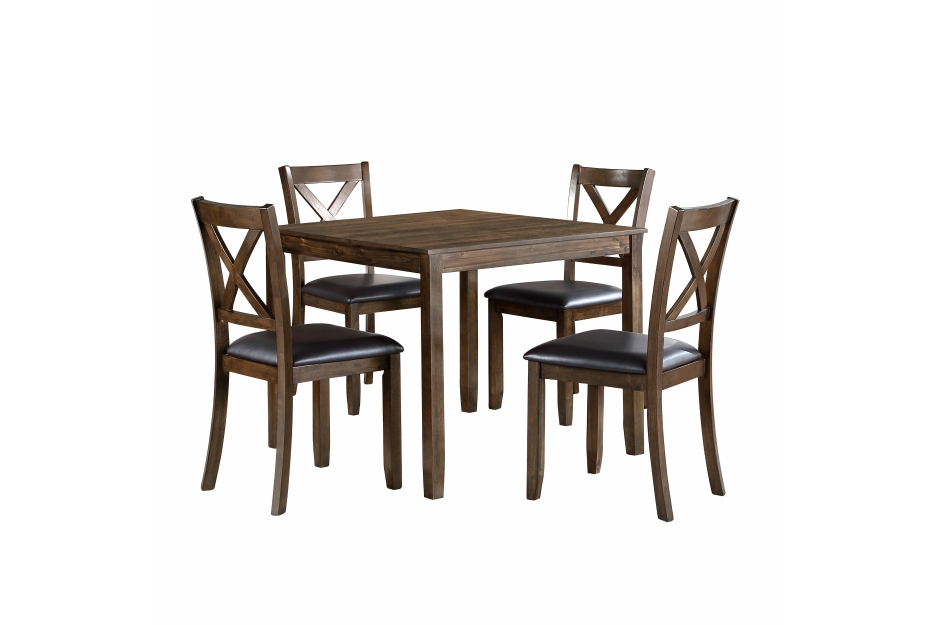 Scaled for your casual dining nook, the transitionally styled Haze Collection will provide the perfect complement to your home’s decor. X-back wood-framed chairs feature dark brown faux leather seating that pair with the coordinating table. The five-piece dining collection seats four and is offered in a charcoal brown finish over birch veneer.