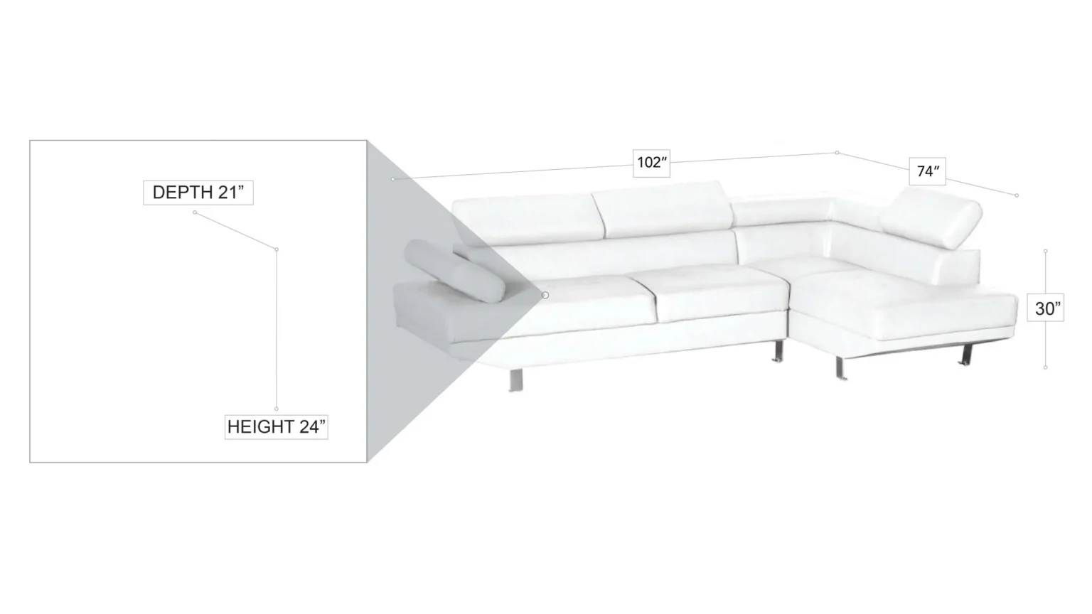 Dimensions: 102” x 76.5” x 21” H