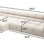 Every part of the Midtown Sofa is plush and inviting. The seat cushions are made from high-density foam which are deep and supportive. The backrest with its gentle slope and tufted detailing, cradled my back in just the right way. As if it had been custom made for my comfort. W126″ X D43″ Total Height: 27″ Chaise Depth: 59″ Arm Height: 19″ Chaise Seat Depth: 40″ Seat Height: 15″ Seat Depth: 27″