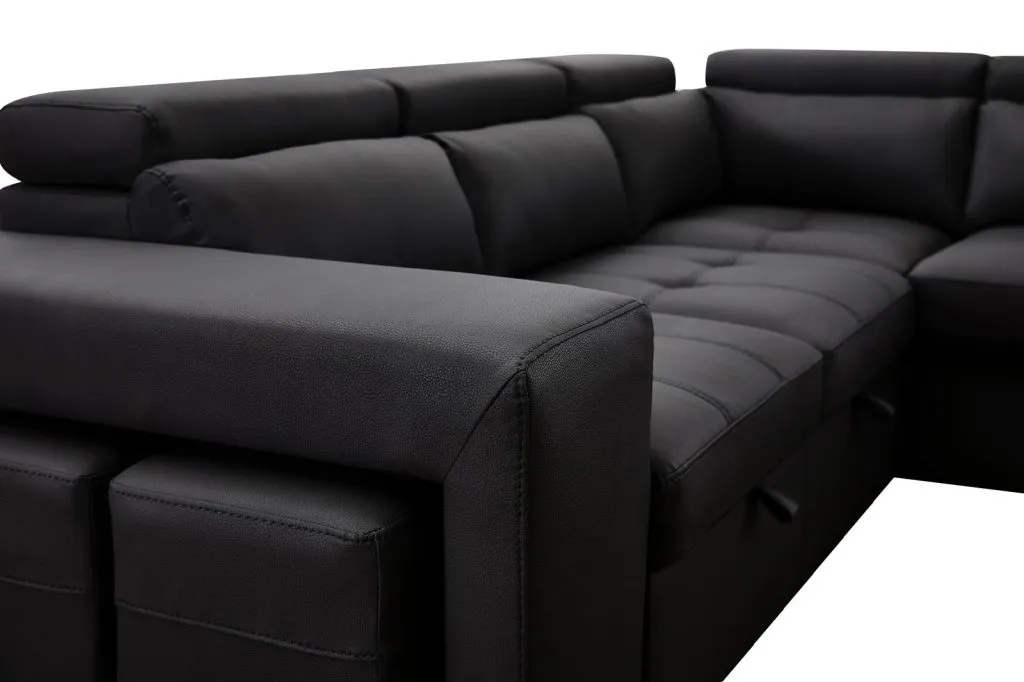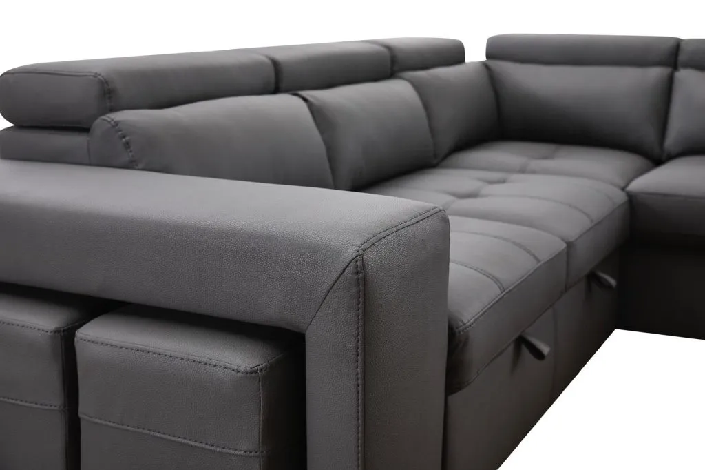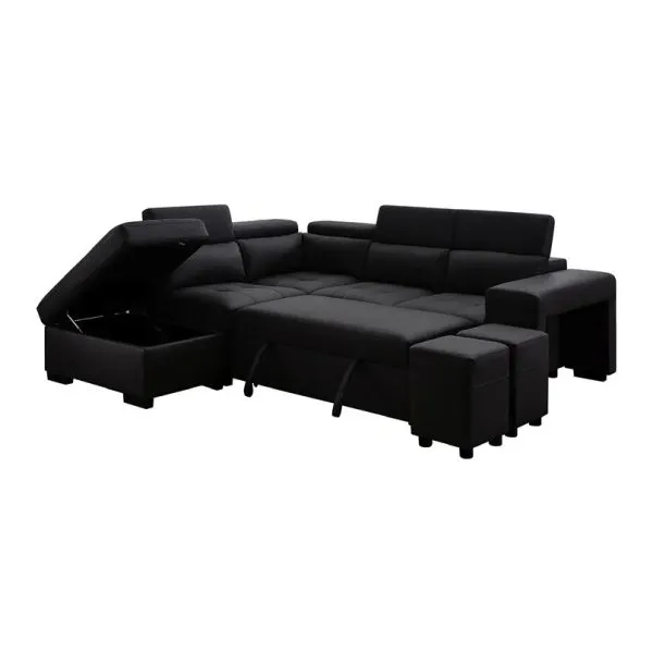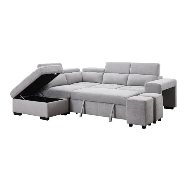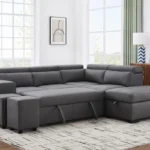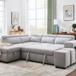 The Patanio sectional sofa bed embraces a contemporary aesthetic with its clean lines and sleek silhouette. The premium fabric is available in a variety of pleasing neutral shades that add an air of refined elegance to any space, allowing it to effortlessly blend with various interior styles. Its timeless appeal ensures that it remains a centerpiece of your home décor for years to come. This sectional sofa offers more than just impeccable style.   100″L x 80″W x 30/35″H