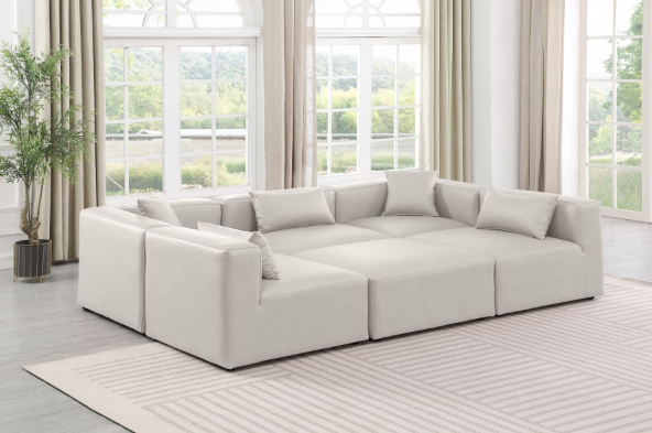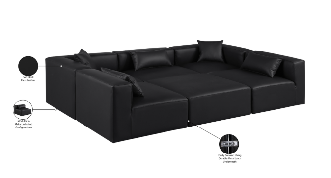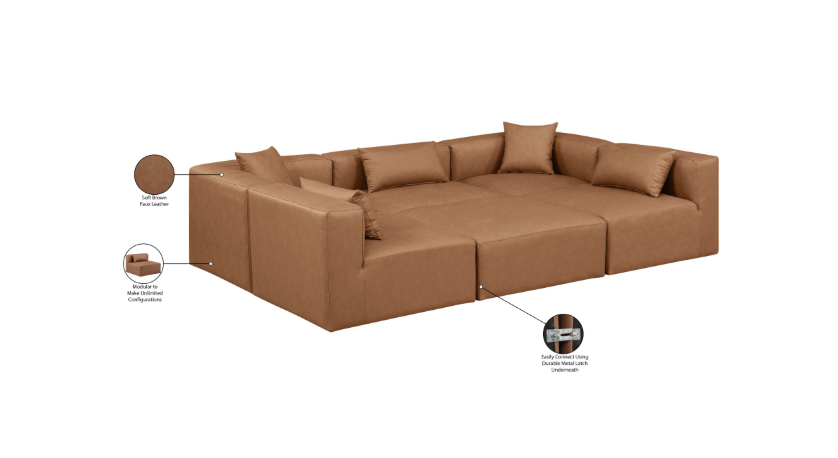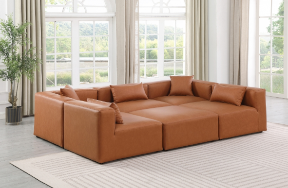 108″ Vegan Leather Upholstered 6pc. Modular Sectional