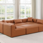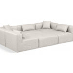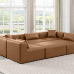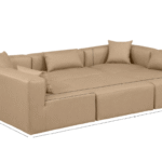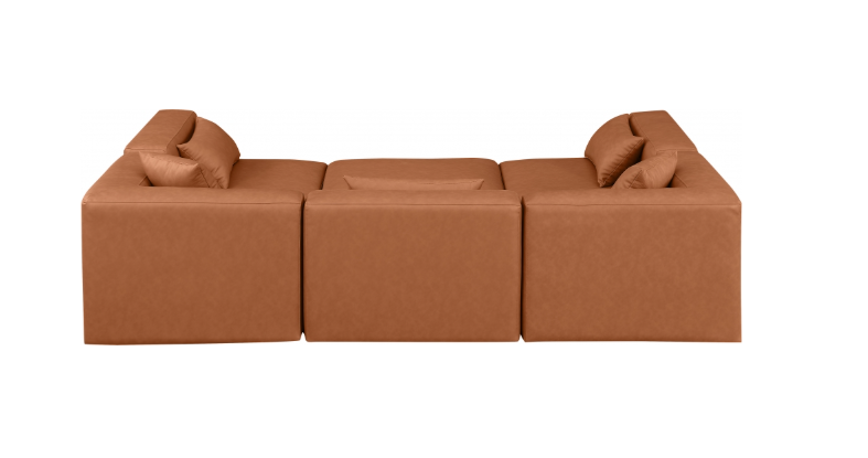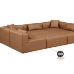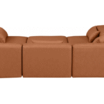 Elevate your space with the luxurious Vegan Leather Modular Sectional. This modular sectional exudes modern elegance, charm, and comfort making it a perfect addition to any contemporary living space. Its clean lines and cube shape are reminiscent of minimalist design, while the plush tan vegan leather upholstery adds a touch of luxury and sophistication. The chair’s versatile construction and geometric aesthetic seamlessly integrate into various design styles, from sleek living rooms to chic home offices, embodying the essence of modern design and creating a sense of order and tranquility in your space.